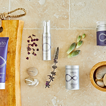 Infinite by Forever is a complete anti-aging skincare set for men and women. The set contains four products that work together perfectly: hydrating cleanser, firming serum, restoring crème and firming complex. This powerful skincare helps reduce the appearance of fine lines and wrinkles and gives a radiant, hydrated skin. Infinite by Forever is based on aloe vera and is reinforced with various plant extracts. While creating the formulas we used the latest skin technology.